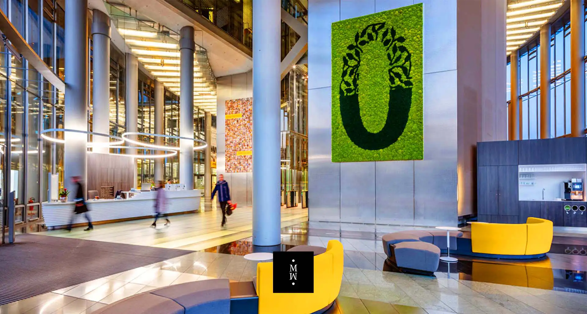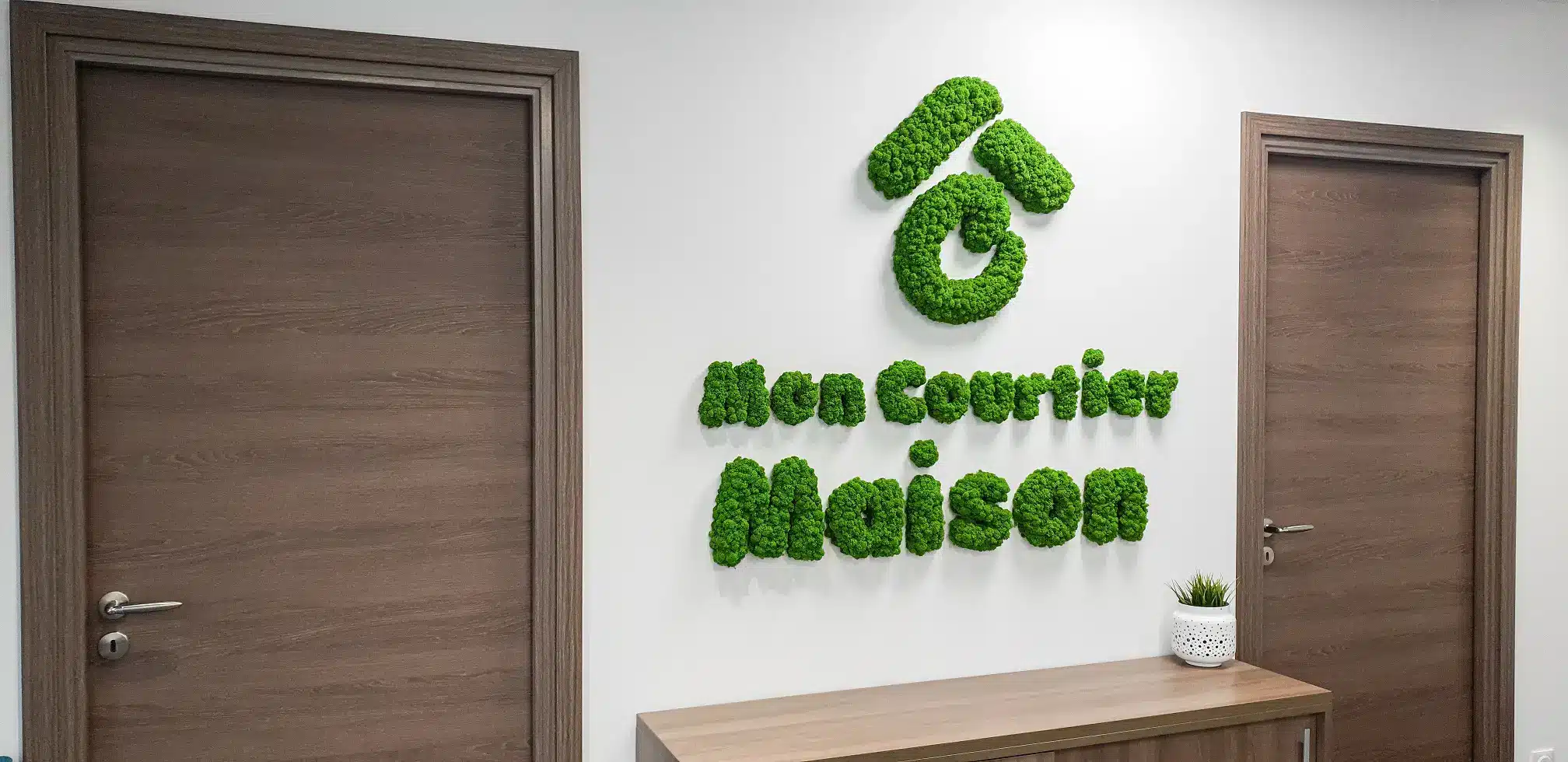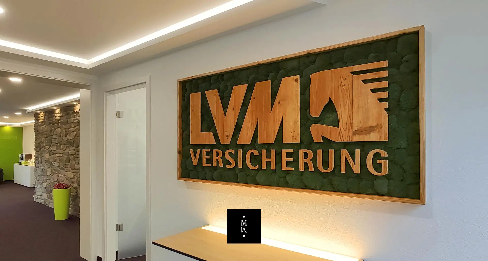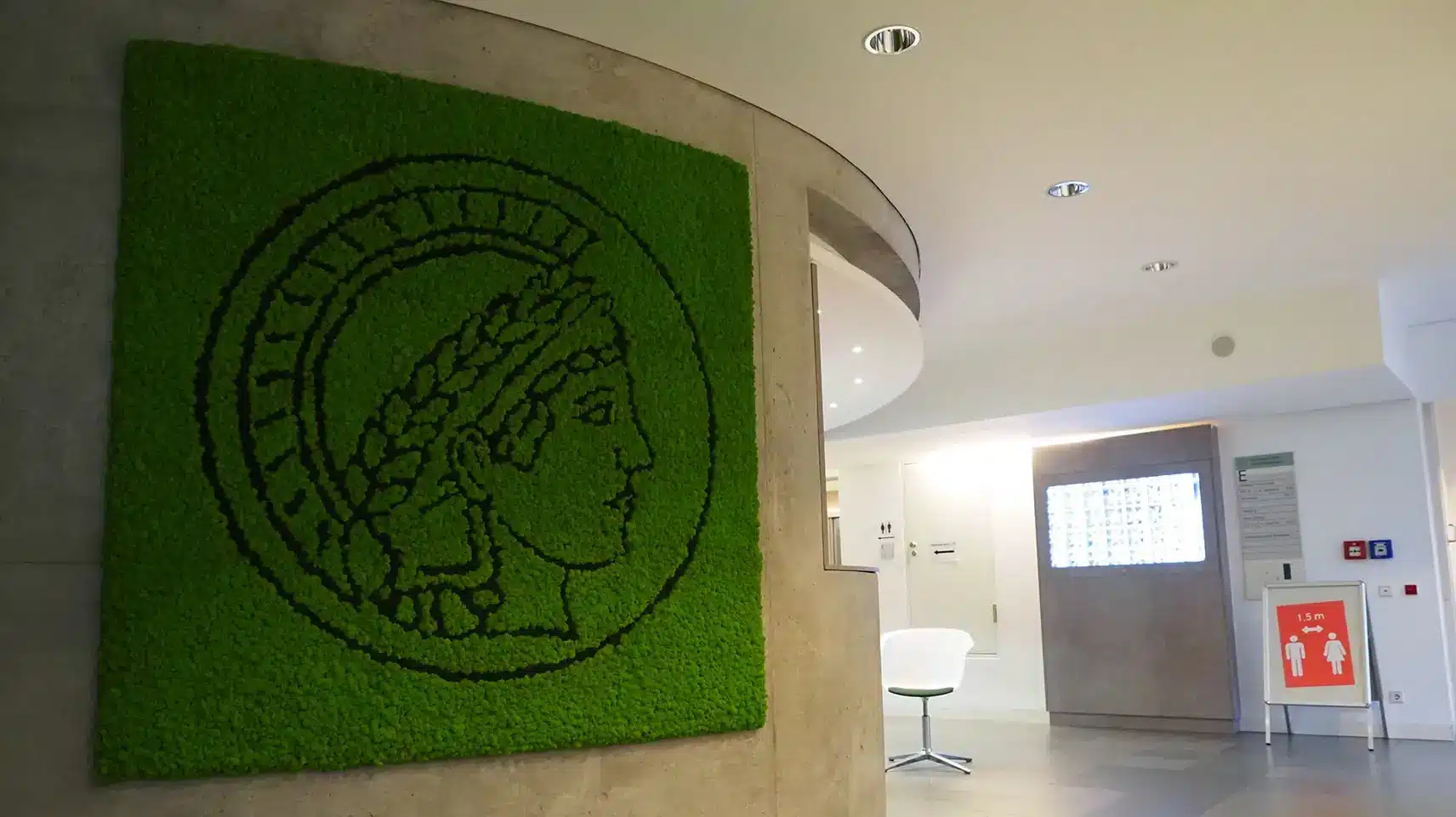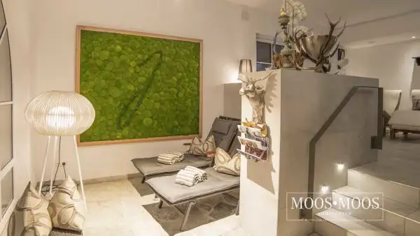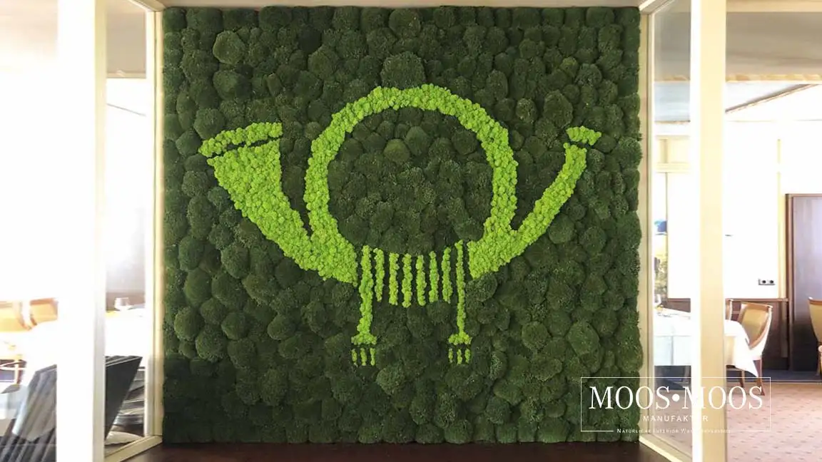 Ihr Logo oder Firmenslogan aus echtem Moos ist ein garantierter Hingucker. Egal ob Sie täglich mehrere hundert Kunden begrüßen oder Sie das Office «nur» mit Ihren Mitarbeitern und Kollegen teilen: Moos im Innenraumdesign ist ein Statement. Bei der Umsetzung Ihrer Ideen sind nahezu keine Grenzen gesetzt. Dabei profitieren Sie nicht nur von der einzigartigen Optik und Haptik, sondern auch von den vielen positiven Eigenschaften unserer Moose. Größere grüne, natürliche Flächen wirken beruhigend auf Körper und Geist. Zudem verbessert unser Moos das Raumklima und absorbiert Schall.
