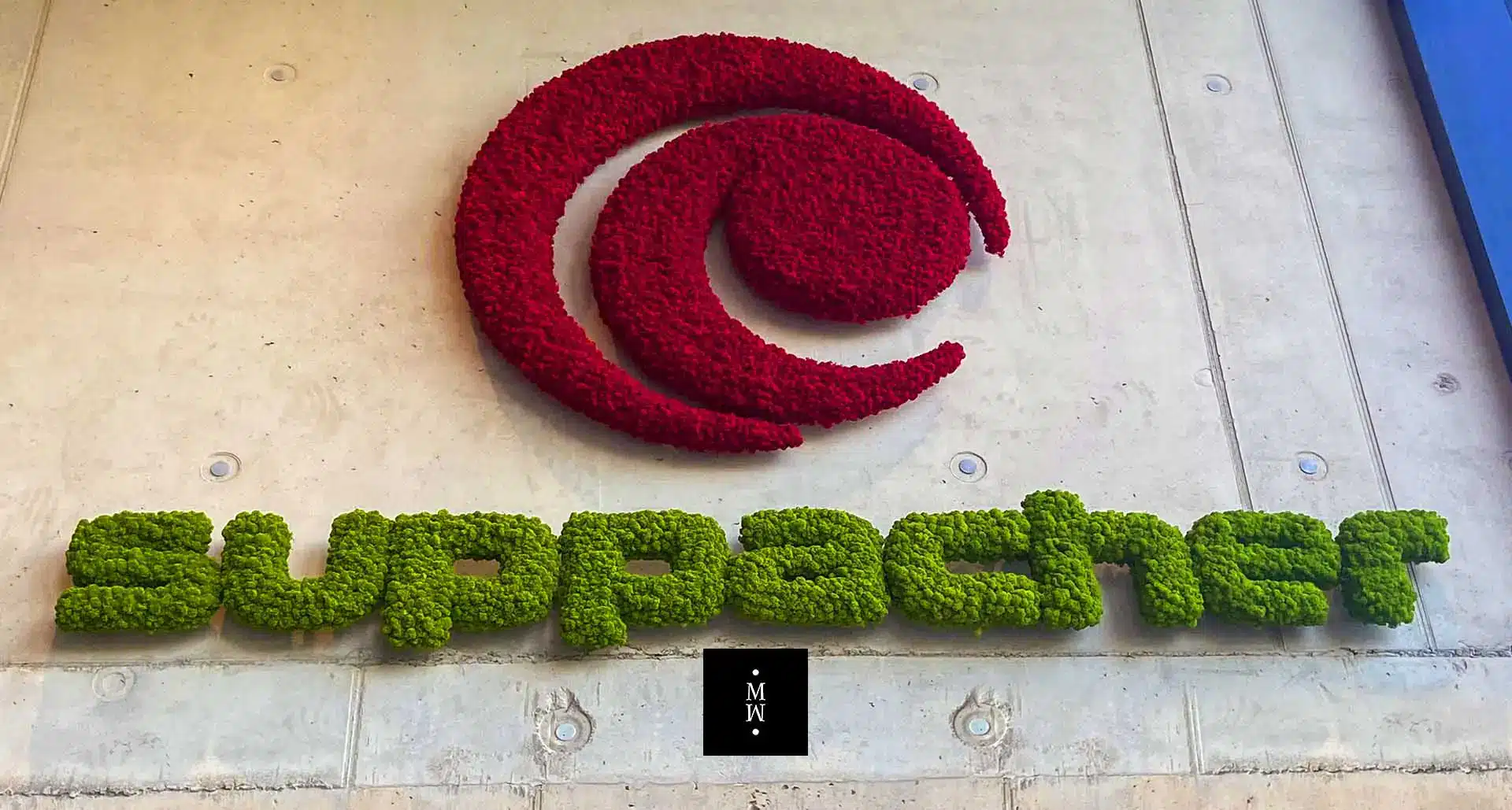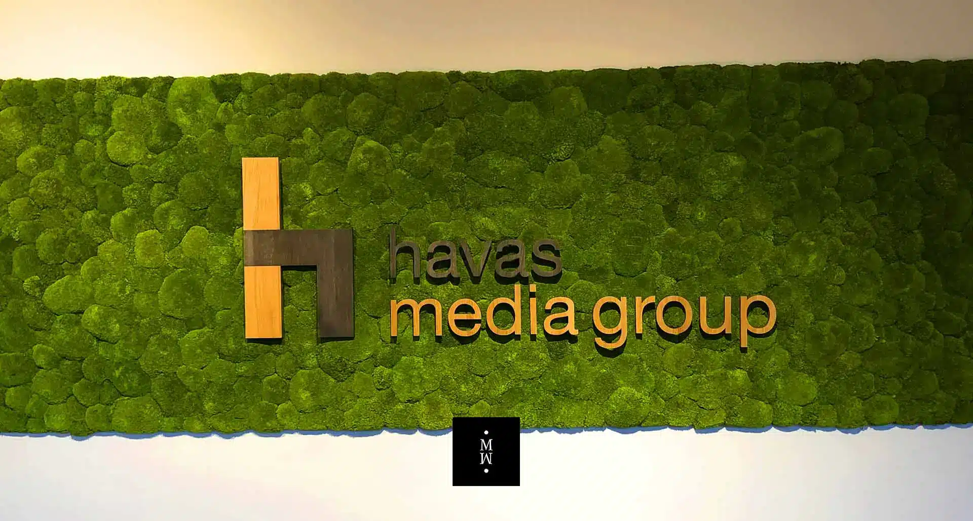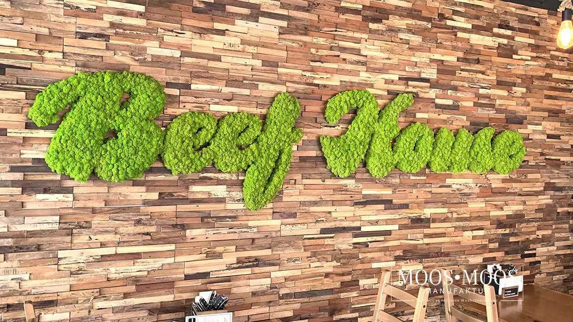 LOGOS AUS HOLZ, ACRYL ODER ANDEREN MATERIALIEN INTEGRIERT IN EINER MOOSWAND