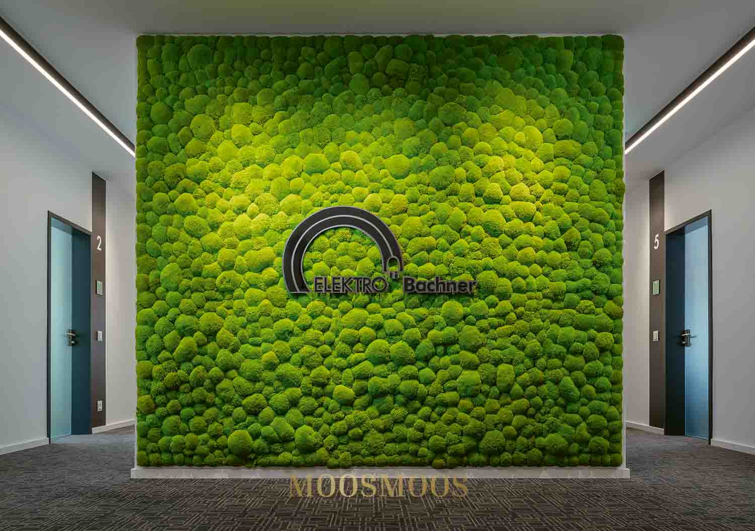 Wählen Sie aus unseren verschiedenen Moos- und Pflanzenarten Ihre Favoriten und kreieren Sie mit unseren Moosprofis Ihre individuellen Logos aus Moos. Unsere Wände aus Moos passen sich perfekt an jede Raumstruktur an, egal ob Kanten und Absätze oder viel freie Fläche. Dank unseres speziellen Montagesystems ist auch die Integration von Leuchtmitteln oder Steckdosen problemlos möglich. Unsere Wände aus Moos bieten unzählige Gestaltungsmöglichkeiten, sodass Ihrer Kreativität und Umsetzbarkeit Ihrer Ideen nahezu keine Grenzen gesetzt sind.